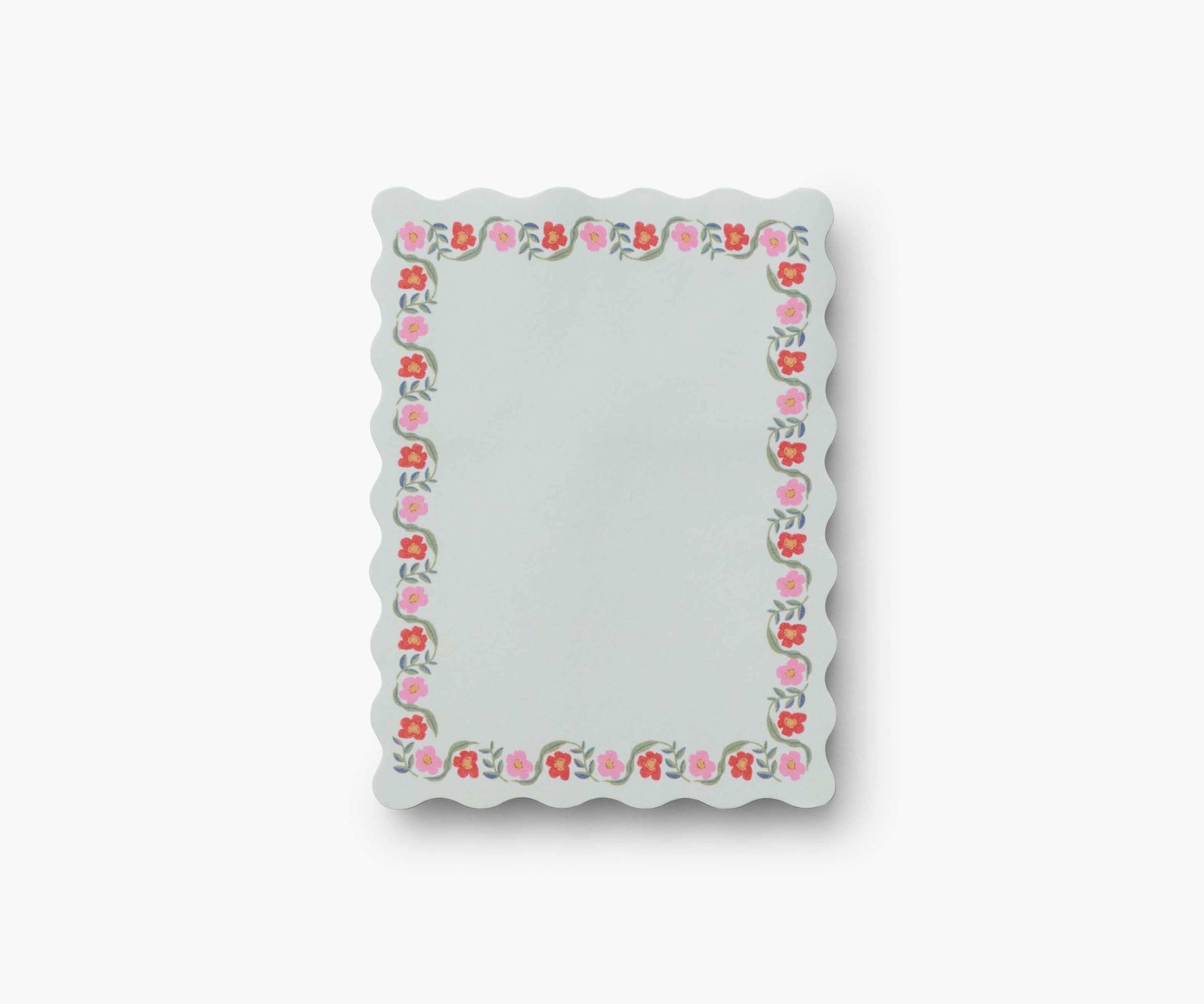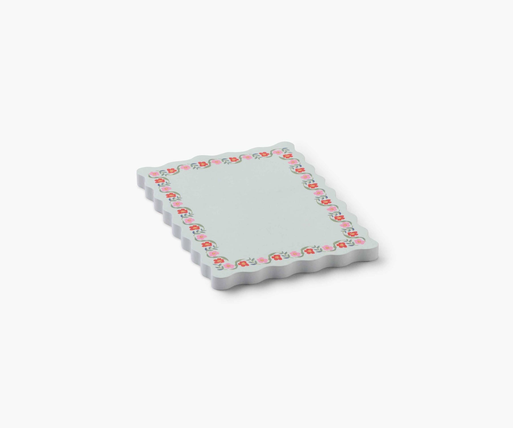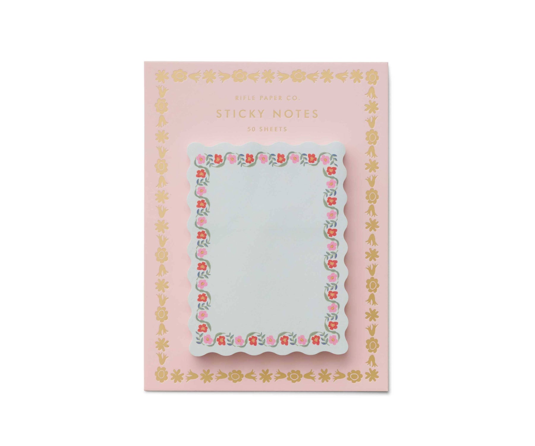 Leave a sweet note with this pad of 50 die-cut sticky notes, bordered in charming Delphine blooms. FEATURES Uncoated smooth paper Die-cut shape 3.3" W × 4.1" L 50 adhesive sheets Imported