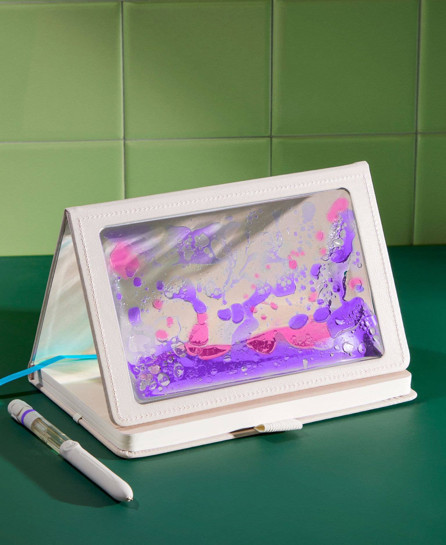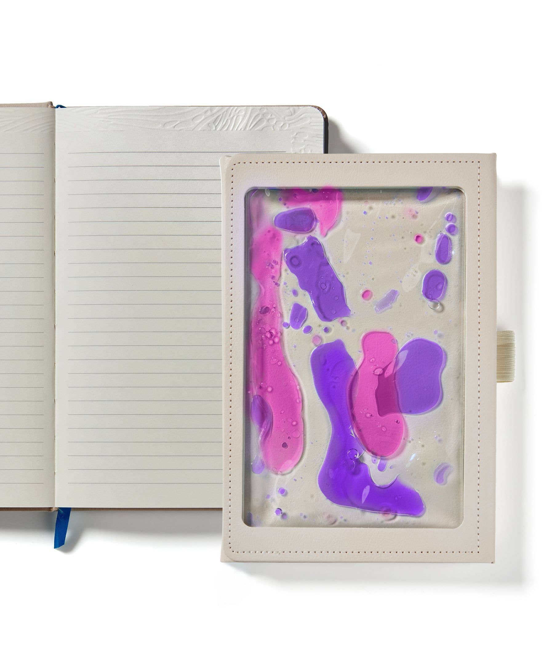 Lifelines "Shake It Up" Sensory Journal - with Tactile Cover & Embossed Paper - Purple Pink (Garden) Spark your creativity with our “Shake It Up: Garden” Sensory Journal, thoughtfully designed inside and out with an interactive color-fusing cover and embossed paper. Delight as you push the colorful liquid or follow the soothing nature-inspired patterns to keep your ideas flowing.